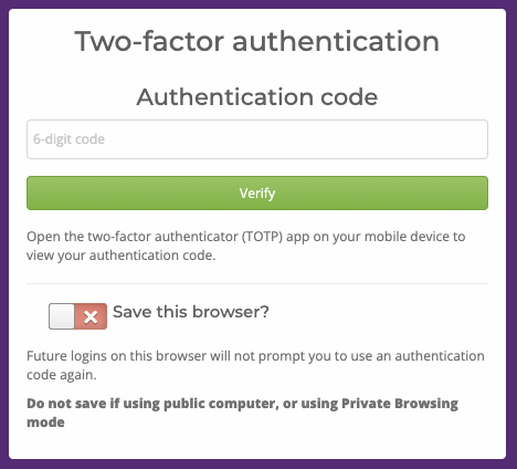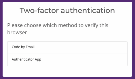 Once enabled, 2FA is required to be completed to login to the dashboard. Select the option to use (if you have more than one enabled).