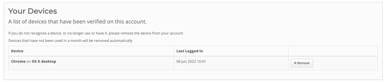 Once set up and the browser saved, you can manage the connected browsers at the bottom of your profile page.