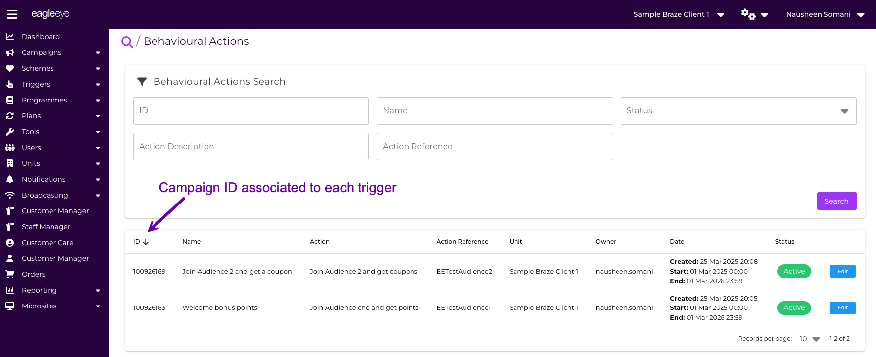 Campaign IDSocial Behavioural Actions in AIR have unique IDs that are campaign Ids in the back end. This can be used in Braze for campaign Id field to customize messages to a consumer for each trigger.