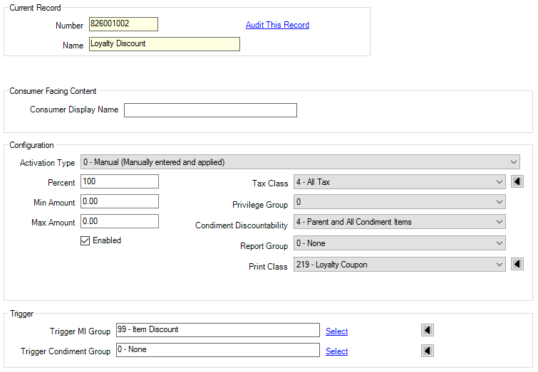 Supported Offer TypesAt the time of writing, only discount based offers are supported in the Simphony POS. Work is scheduled to add deeper integrations and functionality to the POS platform to support Points, Continuity, Quest and other mechanics.